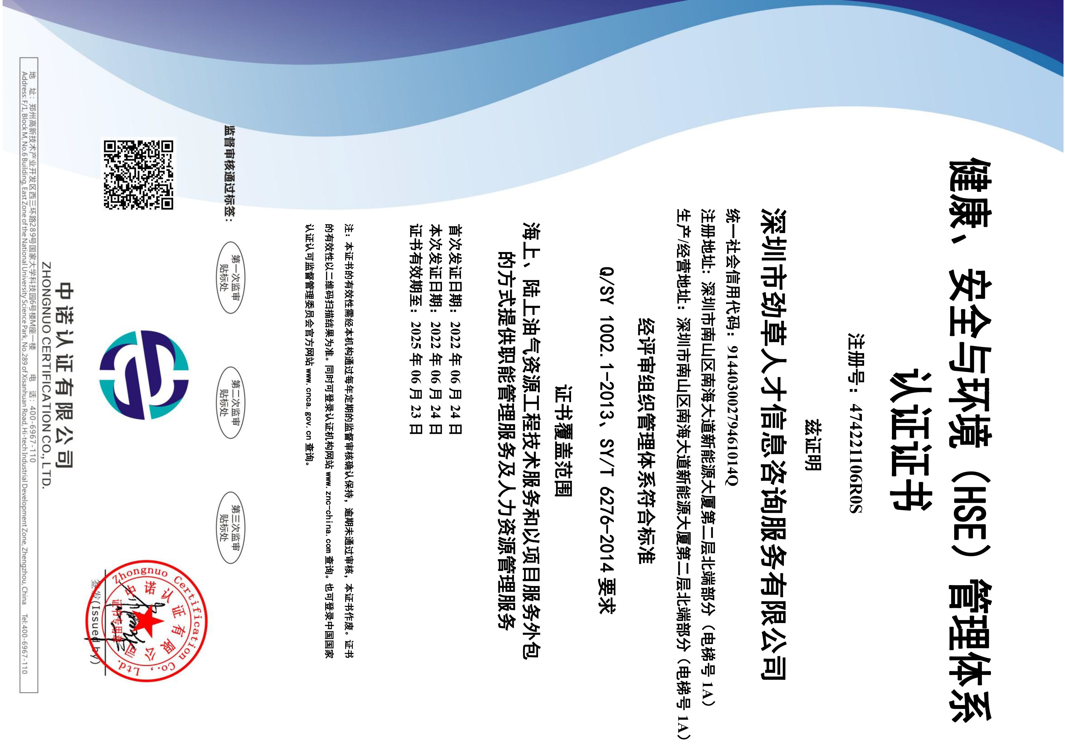 劲草人才荣获HSE认证证书。 47542022-07-26